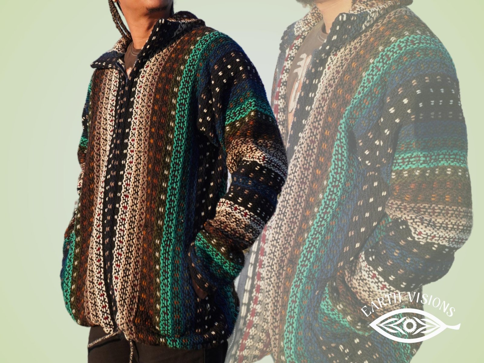 This earth-toned hoodie blends deep greens, browns, blacks, and natural hues into a warm, handwoven design inspired by tribal craftsmanship and outdoor spirit. It’s the kind of piece that tells a story — of connection, craft, and comfort.